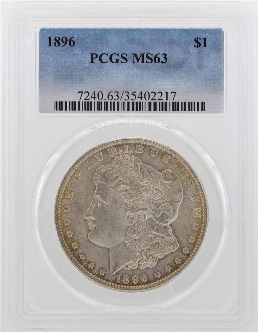 One 1896 $1 Morgan Silver Dollar Coin PCGS MS63. PCGS Certified.