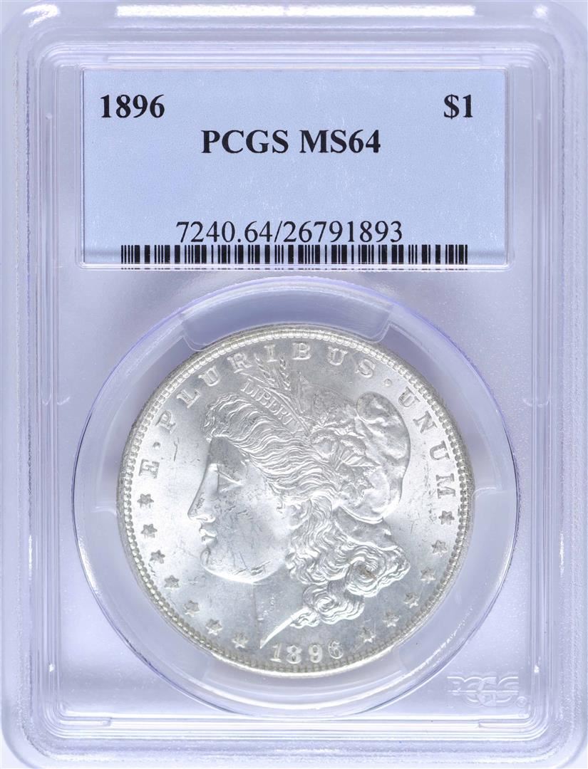 One 1896 $1 Morgan Silver Dollar Coin PCGS MS64 Amazing Toning. PCGS Graded.