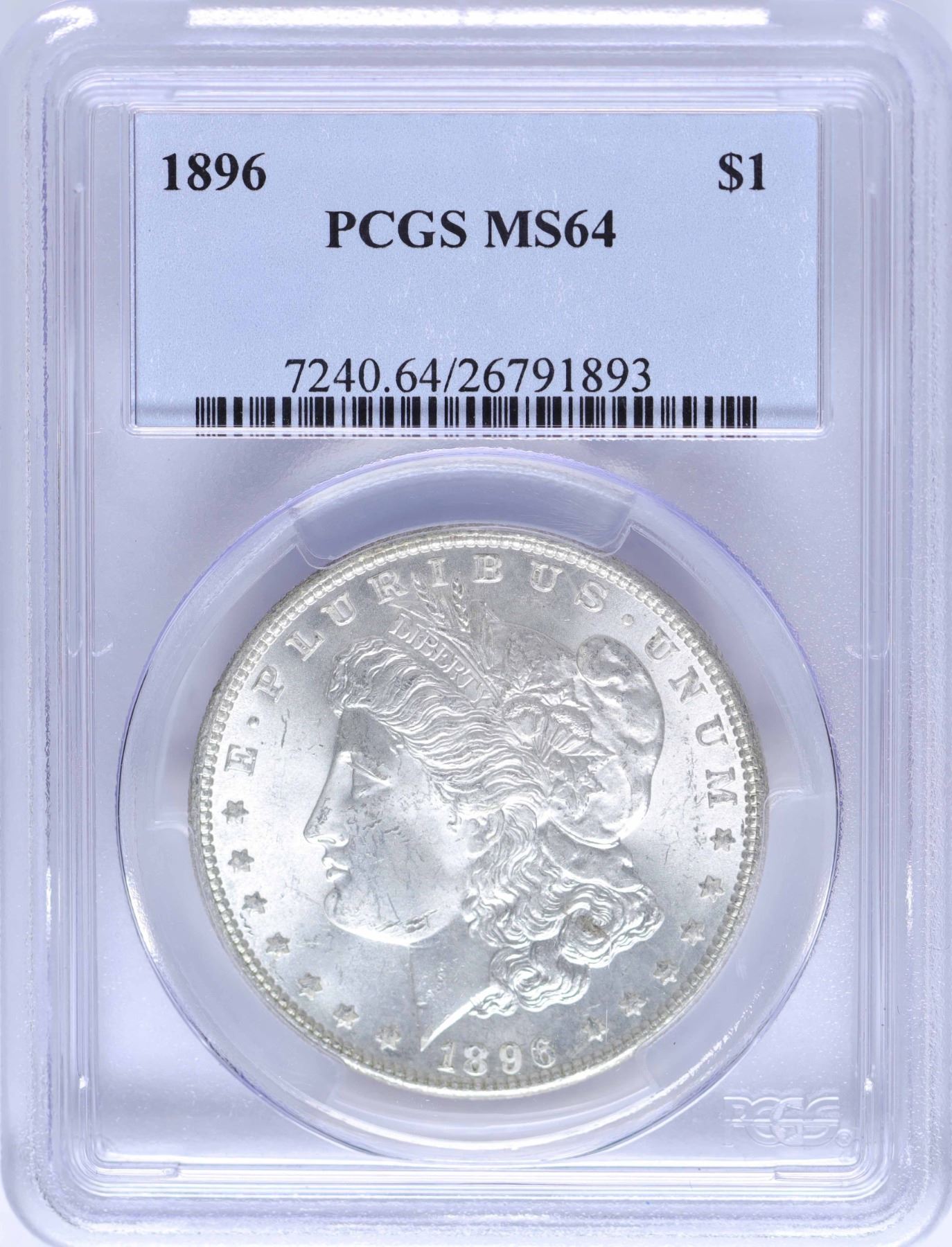One 1896 $1 Morgan Silver Dollar Coin PCGS MS64 Amazing Toning.