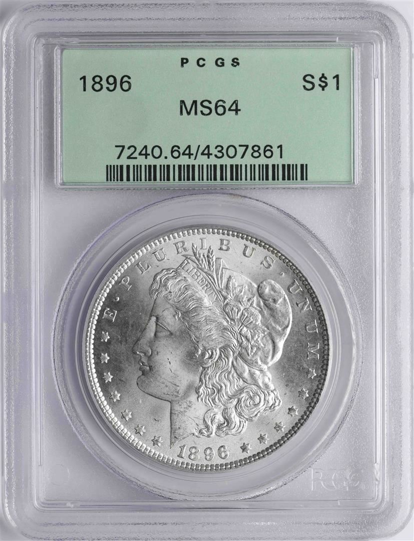 One 1896 $1 Morgan Silver Dollar Coin PCGS MS64. PCGS Graded.
