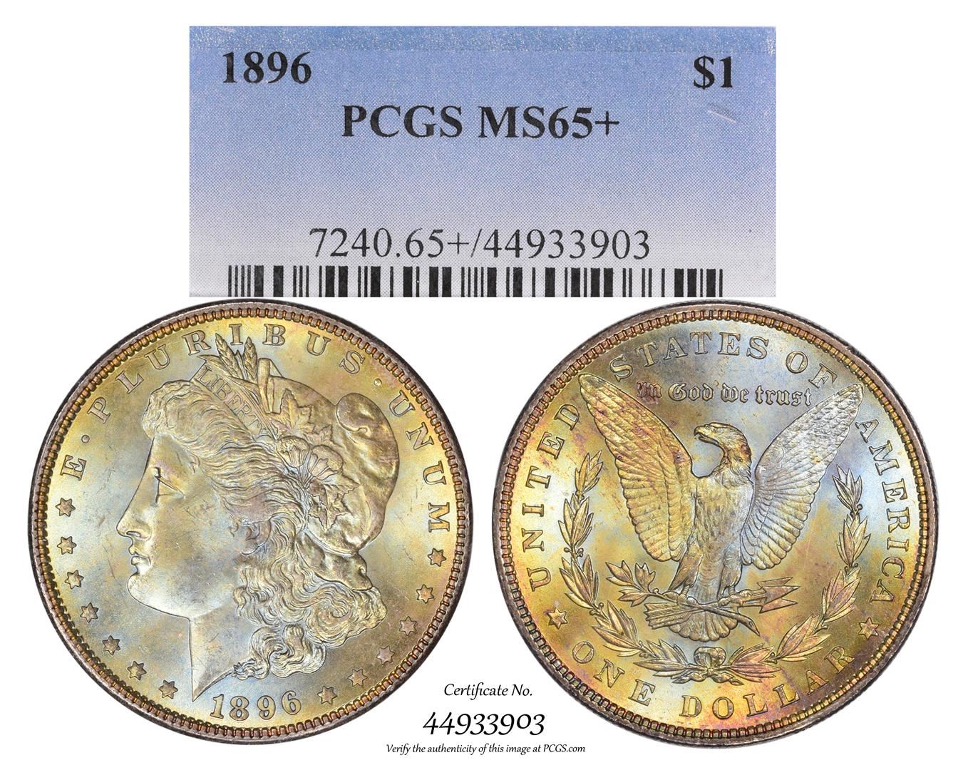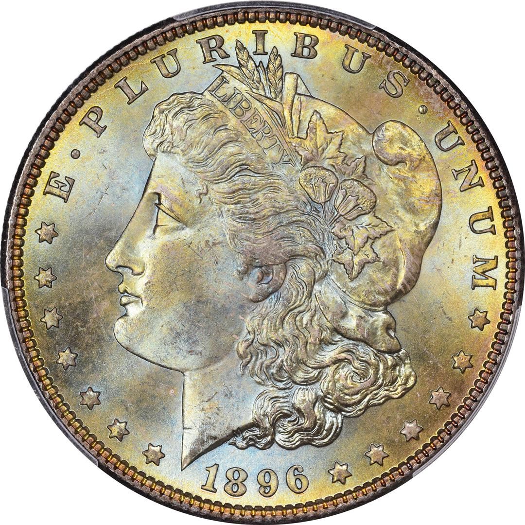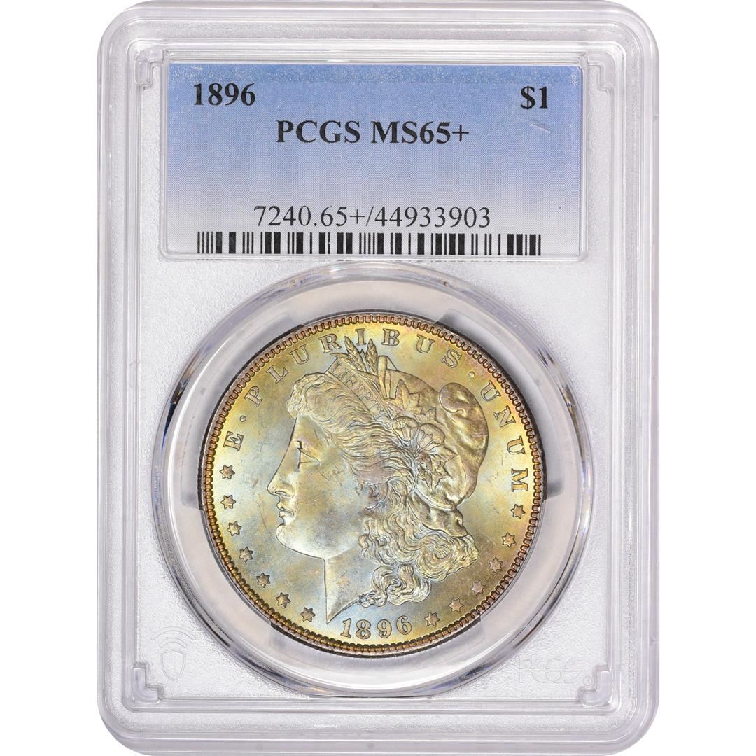 One 1896 $1 Morgan Silver Dollar Coin PCGS MS65+ Amazing Toning. PCGS Graded.