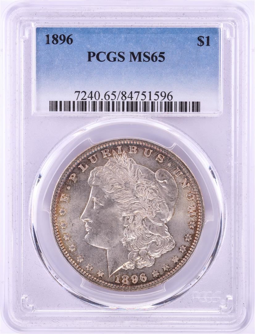 One 1896 $1 Morgan Silver Dollar Coin PCGS MS65 Nice Toning. PCGS Graded.