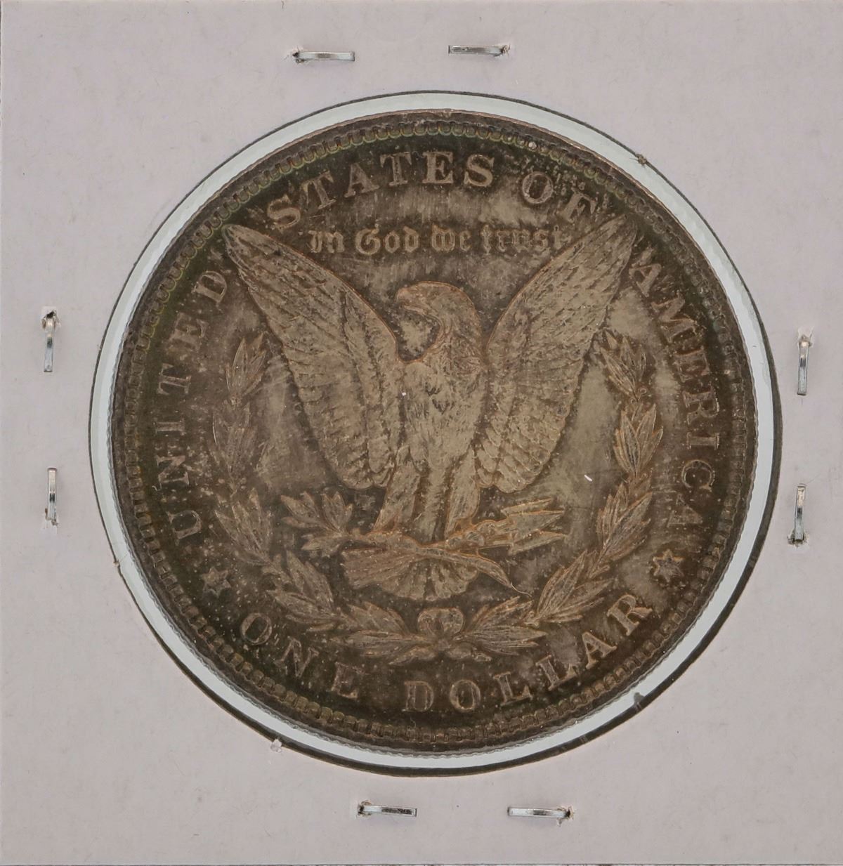 Bidders are advised that certain types of plastic may react with a coins metal or transfer plasticizer to notes and may cause damage. Caution should be used to avoid storage in materials that are not inert.