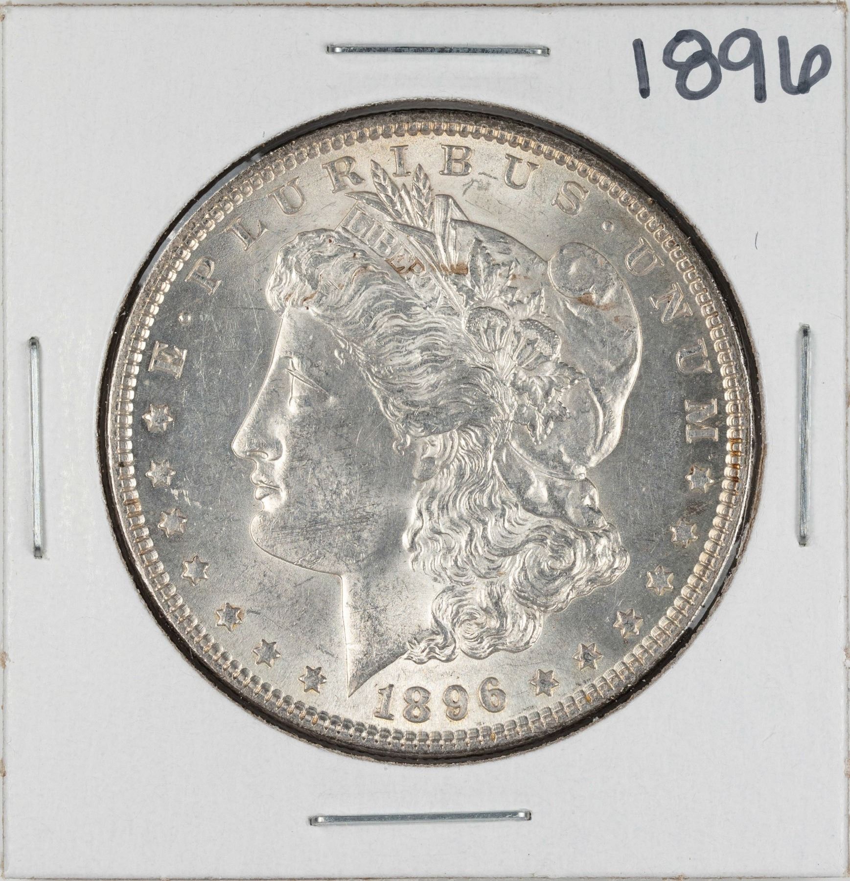 One 1896 $1 Morgan Silver Dollar Coin.