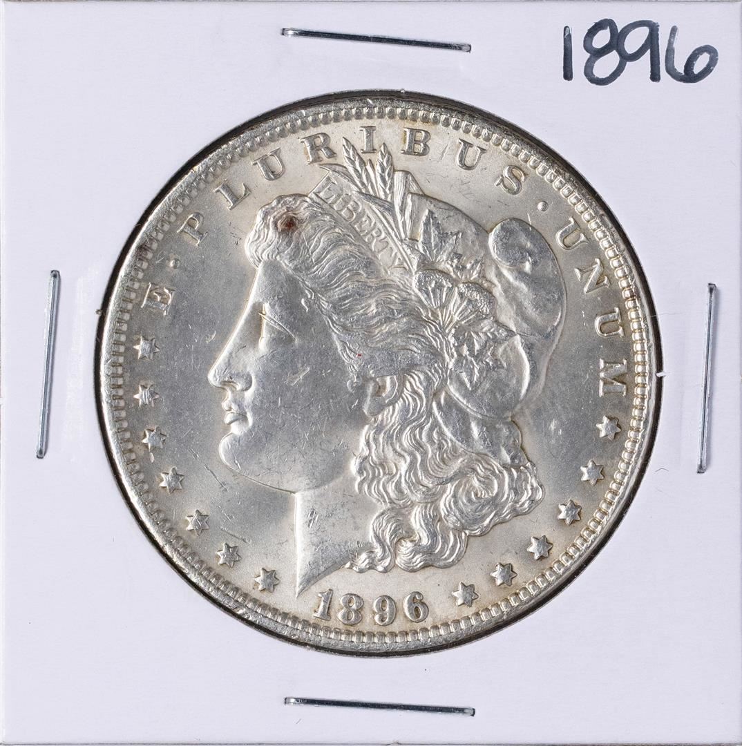 One 1896 $1 Morgan Silver Dollar Coin.