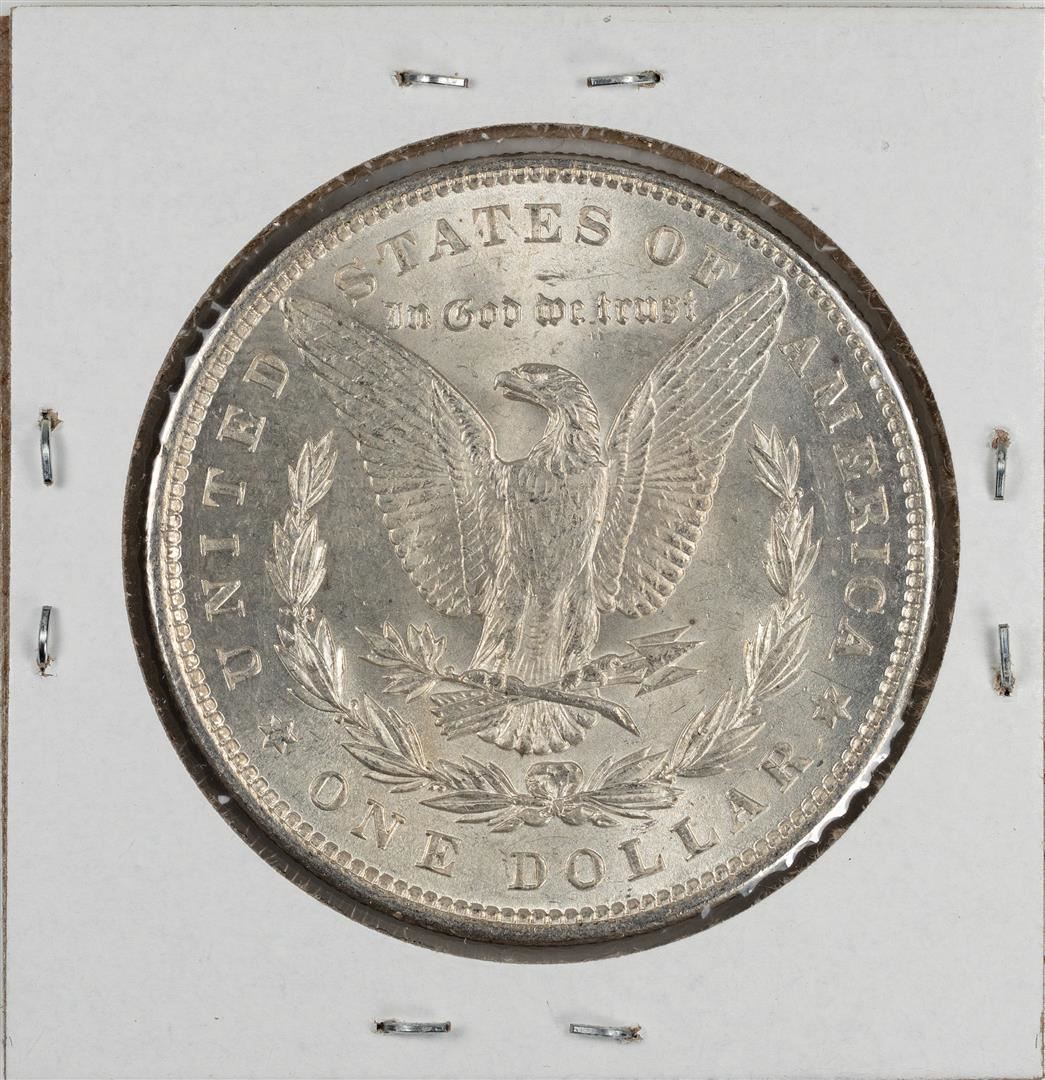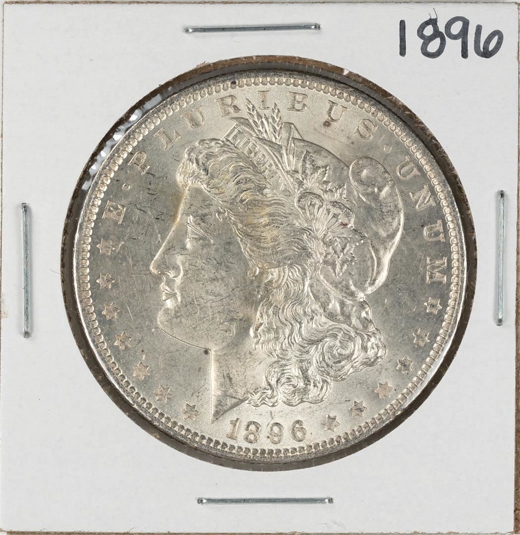 One 1896 $1 Morgan Silver Dollar Coin.