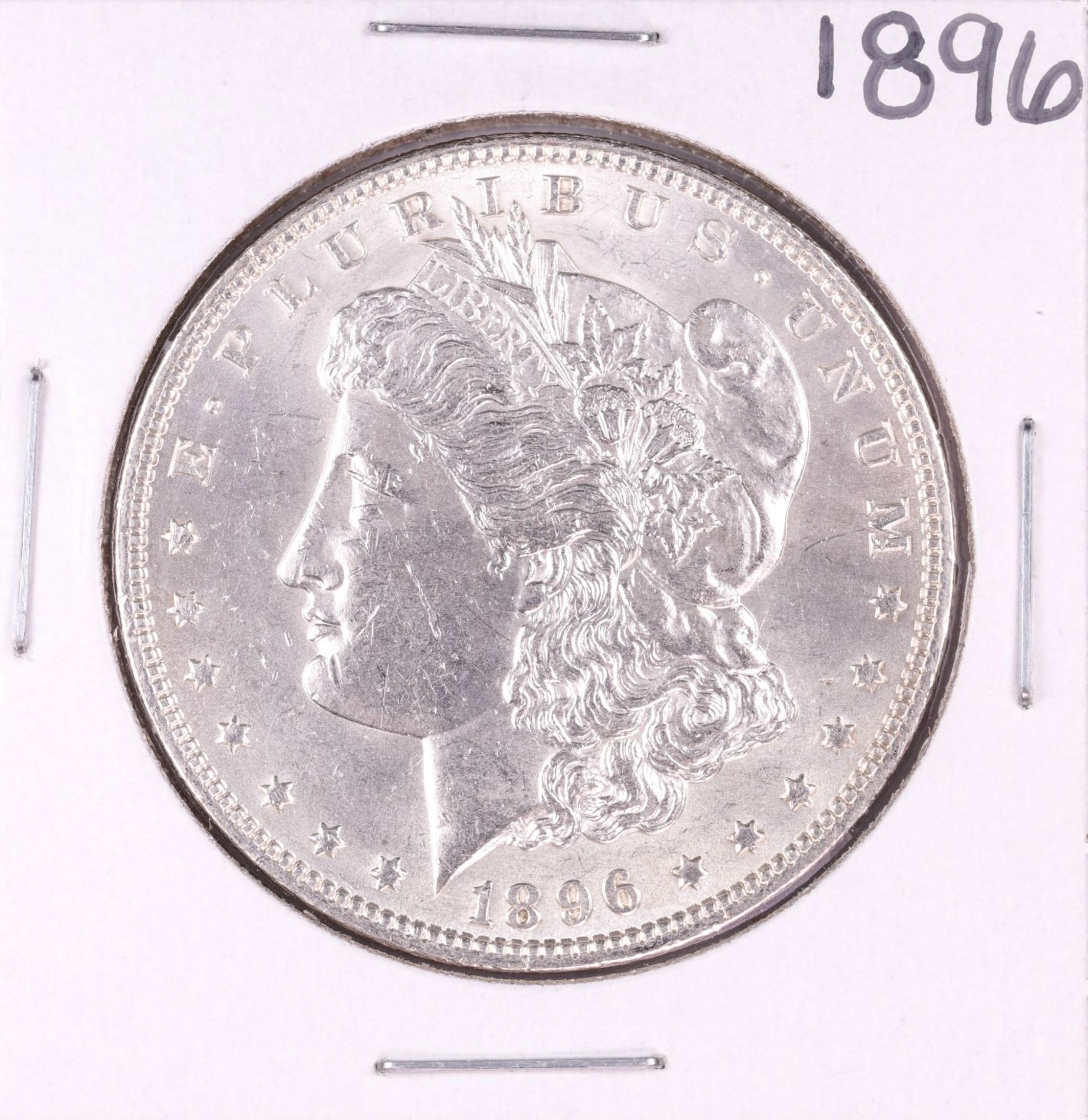 One 1896 $1 Morgan Silver Dollar Coin.