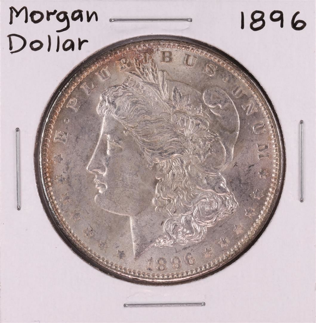 One 1896 $1 Morgan Silver Dollar Coin.