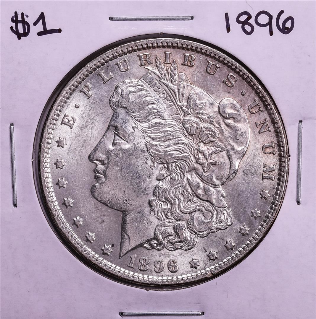 One 1896 $1 Morgan Silver Dollar Coin.