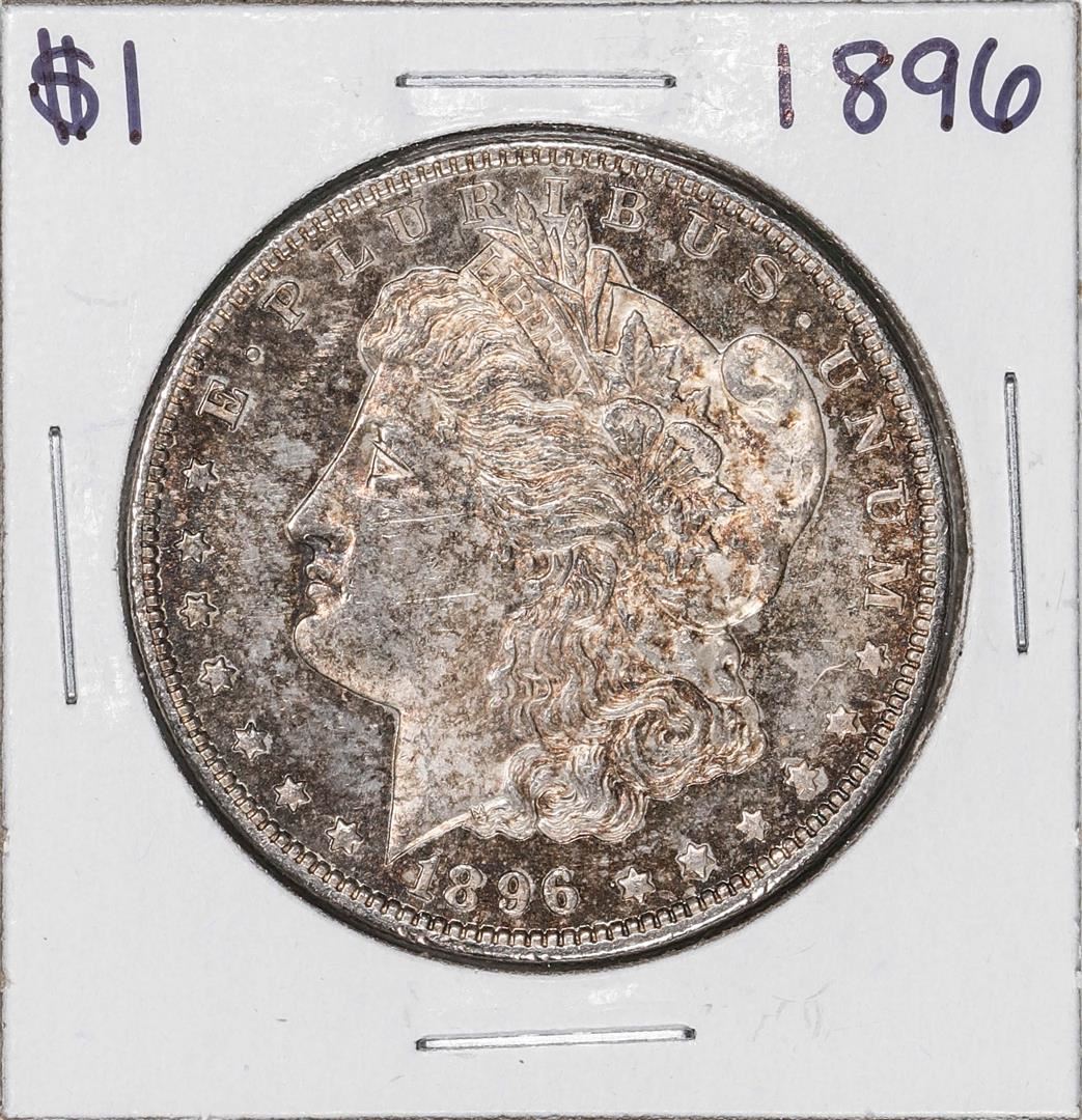 One 1896 $1 Morgan Silver Dollar Coin.