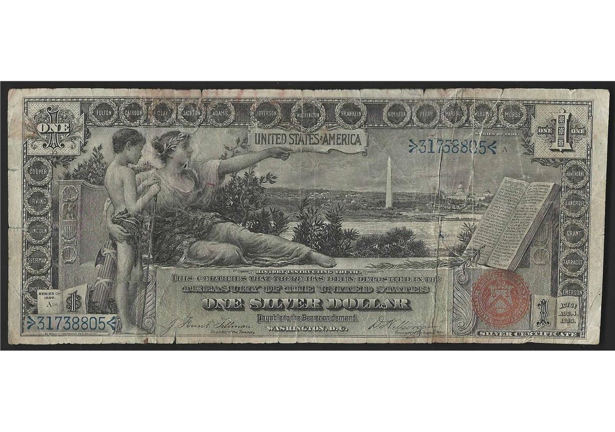One 1896 $1 Silver Certificate Educational Note- Damaged.