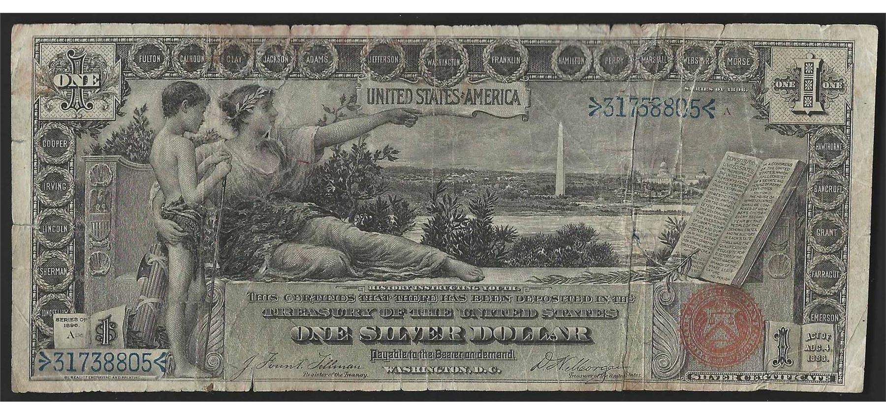 One 1896 $1 Silver Certificate Educational Note- Damaged.