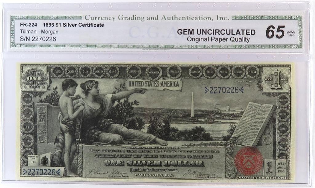 1896 $1 Silver Certificate (Educational) Note. FR# 224. CGA Certified GU65.