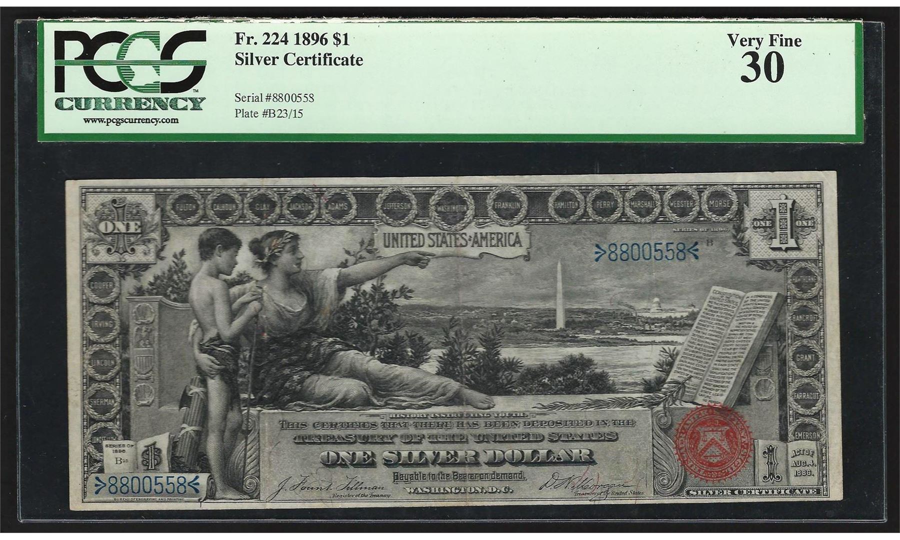 One 1896 $1 Silver Certificate Educational Note PCGS Very Fine 30. PCGS Graded.