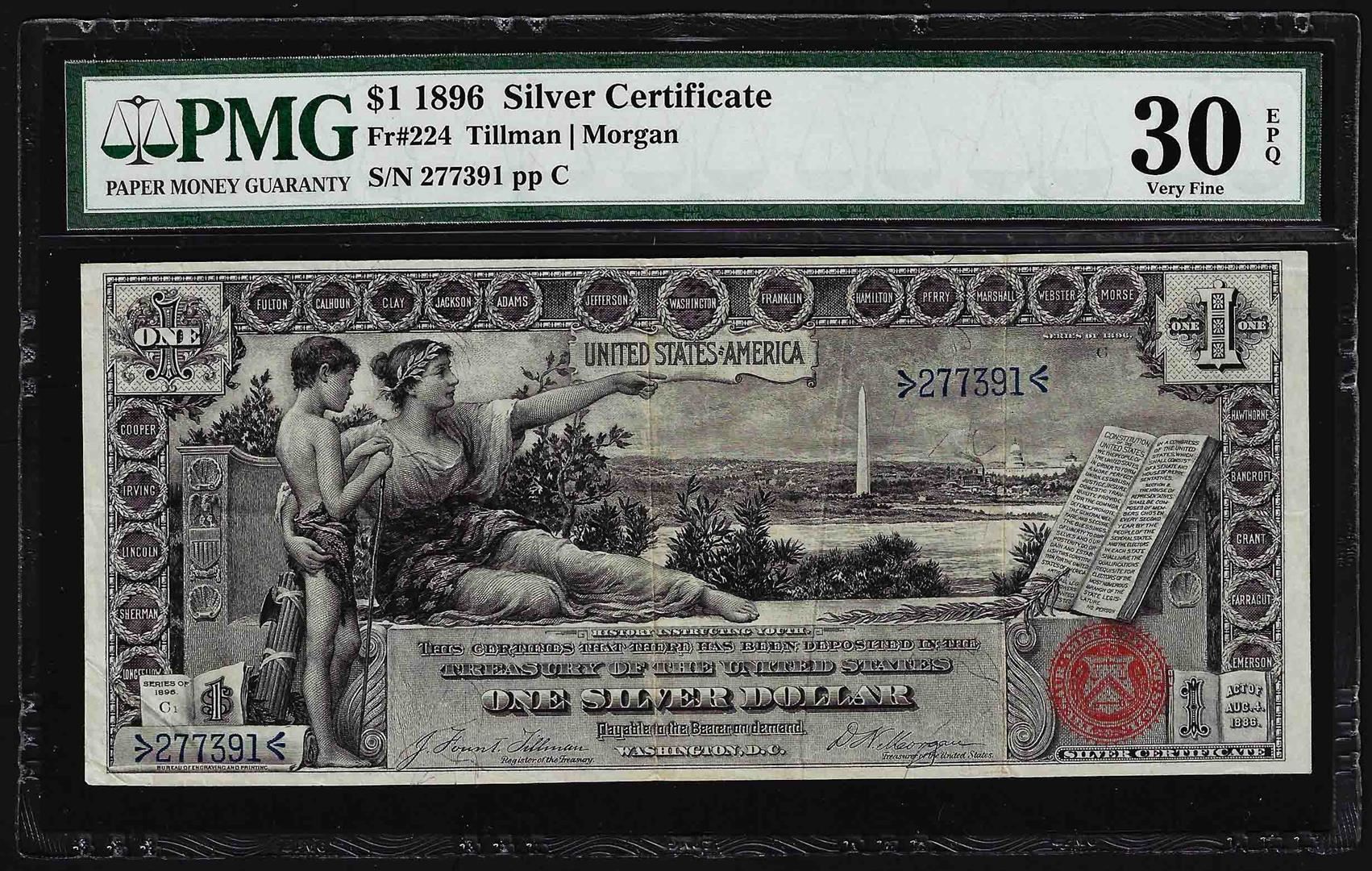 One 1896 $1 Silver Certificate Note Fr.224 PMG Very Fine 30EPQ. PMG Certified.