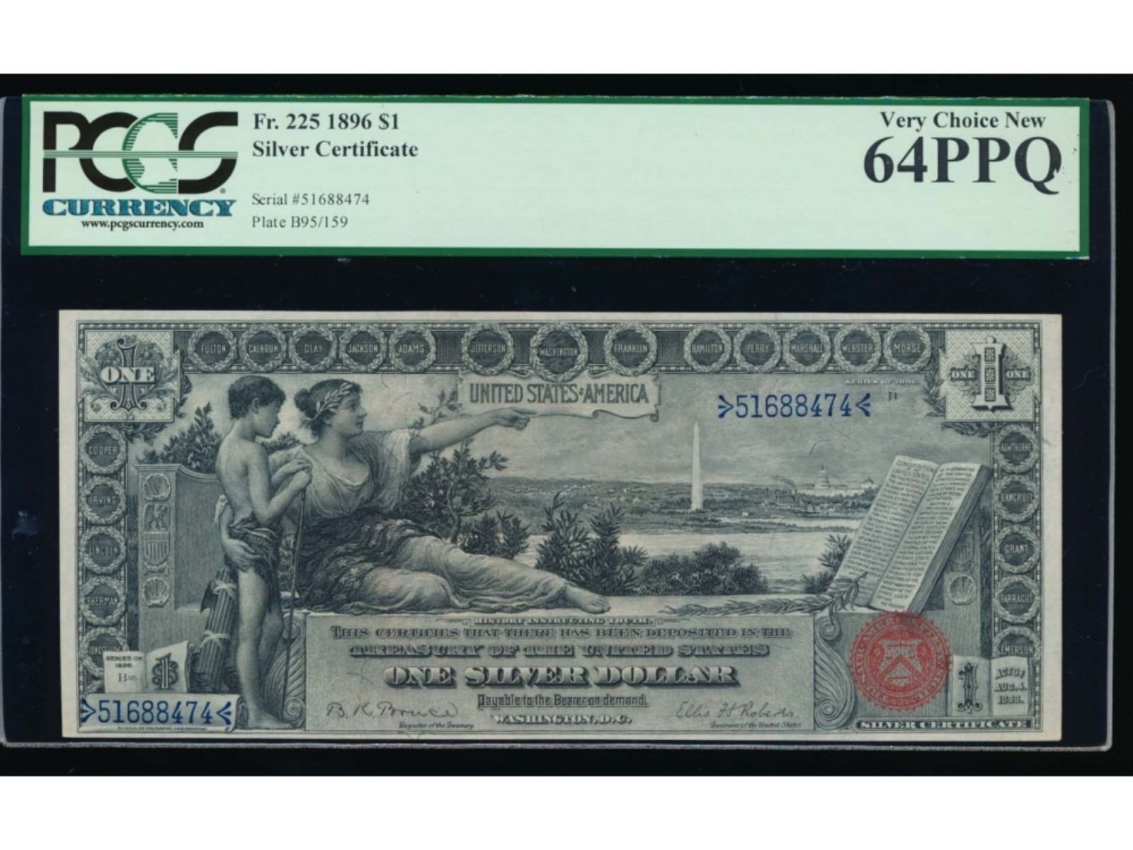 One 1896 $1 Silver Certificate PCGS 64PPQ.