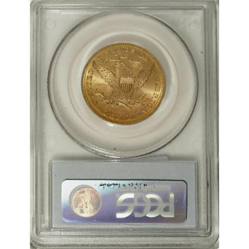 <B>1896 $10 MS64 PCGS.</B></I> Radiant cartwheel luster and delicately patinated orange-gold and greenish-gold hues are the hallmarks of this delightful near-Gem. Seldom seen finer, as both services combined have certified only a single piece finer. Population: 7 in 64, 0 finer (3/07).<BR><BR><b>Shipping:</b> Coins & Currency (<a target="_blank" href="http://www.heritageauctions.com/common/shipping.php">view shipping information</a>)