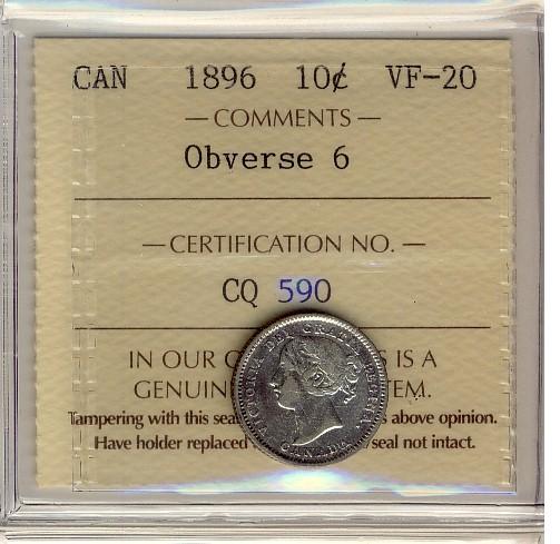 1896 10¢ Obv 6 ICCS VF-20