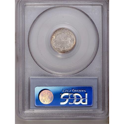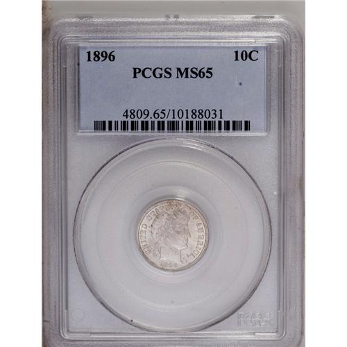 <B>1896<10C> MS65 PCGS.</B></I> This is a pleasingly original representative with a slight amount of dappled russet toning over even, pearl-gray color on each side. The sharp, frosty features have the eye appeal, if not the technical quality of a higher grade. Population: 12 in 65, 9 finer (7/06).