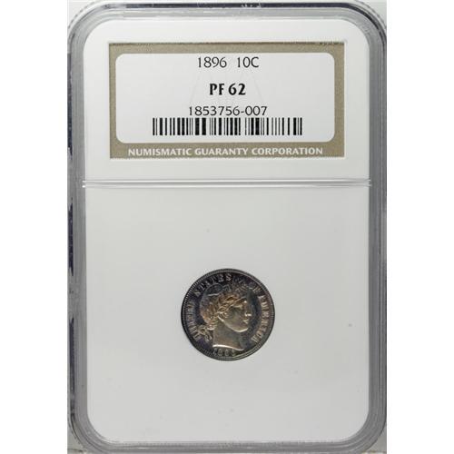 <B>1896 10C PR62 NGC.</B></I> NGC Census: (5/163). PCGS Population (18/184). Mintage: 762. Numismedia Wsl. Price for NGC/PCGS coin in PR62: $280. (#4880)<BR><BR><b>Shipping:</b> Coin/Currency (<a target="_blank" href="http://www.heritageauctions.com/common/shipping.php">view shipping information</a>)