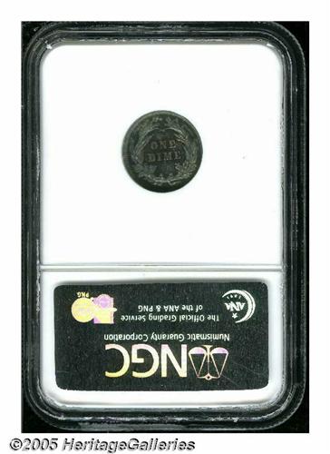 1896 10C PR66 NGC. Mottled teal, indigo and viole