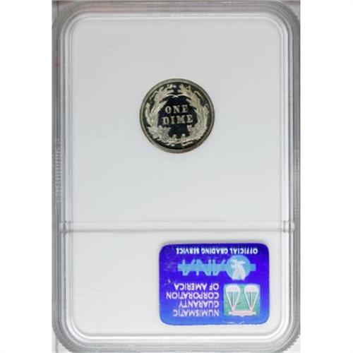 <B>1896 10C PR66 NGC.</B></I> Crisply struck, frosty design elements appear to be suspended over the glassy fields of this marvelous Premium Gem proof. Nearly untoned surfaces reveal just a few trivial marks under high magnification that likely prevent an even finer grade. Census: 46 in 66, 12 finer (1/08).<BR><I>From The Southwest Collection.</B></I><BR><BR><B>Coin Engraver:</B> Charles E. Barber<BR><BR><b>Shipping:</b> Coins & Currency (<a target="_blank" href="http://www.heritageauctions.com/common/shipping.php">view shipping information</a>)