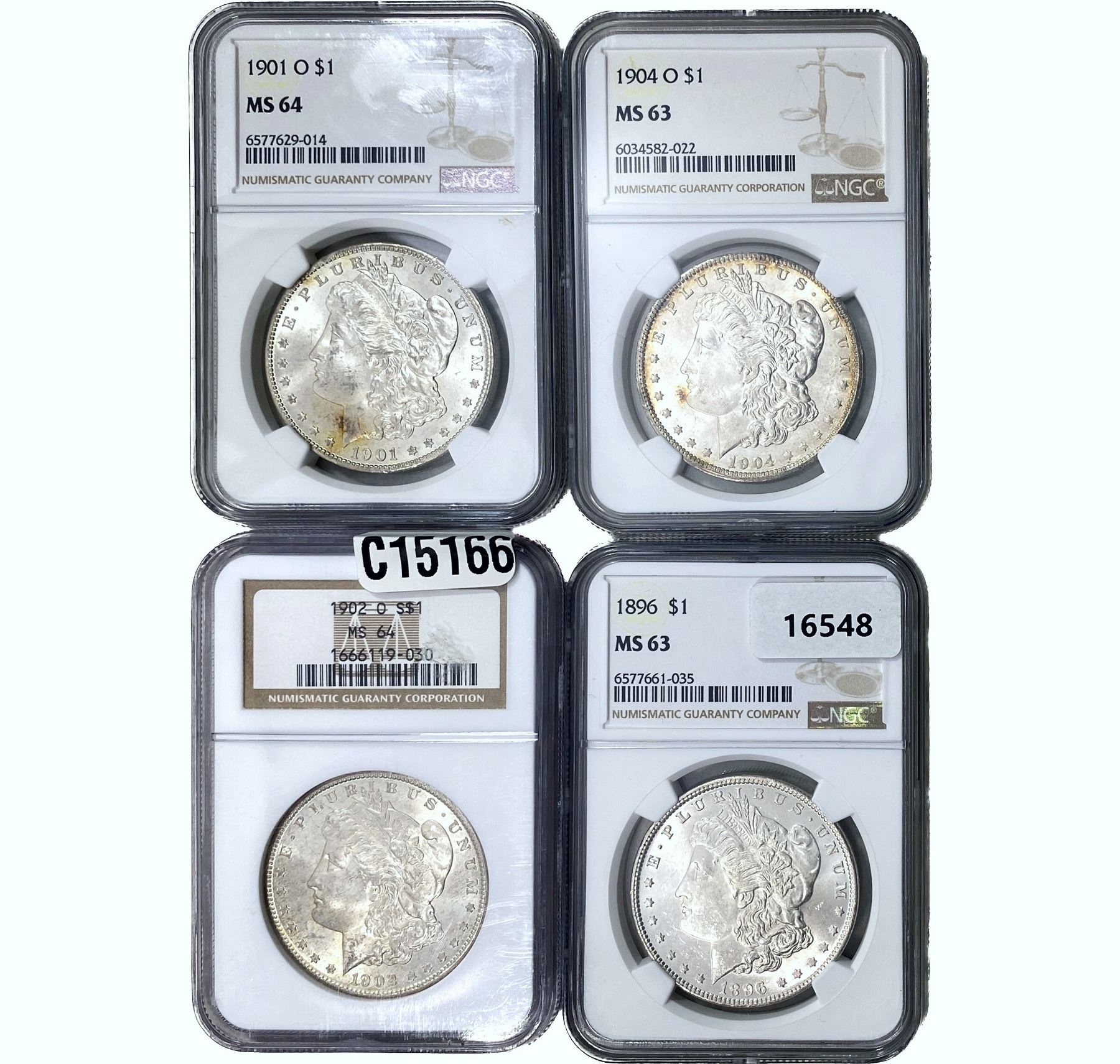 1896-1904 GEM BU Morgan Silver Dollar[4 Coins] NGC MS63/64