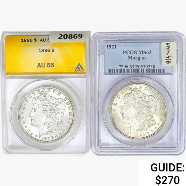 1896&1921 [2] Morgan Silver Dollar ANACS/PCGS AU/MS