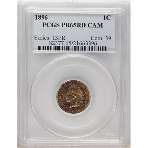 <B>1896 1C PR65 Red Cameo PCGS.</B></I> A cameo-like effect is established as the well struck devices on both sides are nicely set off by moderately reflective fields. The bright copper-gold surfaces are well preserved, showing no significant abrasions or copper spots. Population: 3 in 65 Red Cameo, 1 finer (1/07).<BR><BR><b>Shipping:</b> Coins & Currency (<a target="_blank" href="http://www.heritageauctions.com/common/shipping.php">view shipping information</a>)