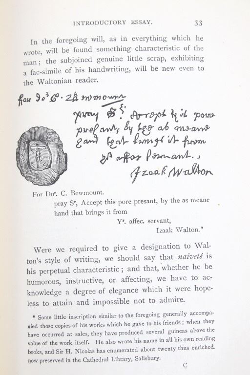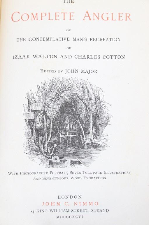 Featured in this lot is this 1896 first edition copy of The Complete Angler by Izaak Walton and Charles Cotton. The book features a a dark green cloth covering with gold gilt fish and lettering. This book includes a photogravure portrait and seven full page illustrations with 74 wood engravings. The condition of this book is fair to good with some wear shown to the spine and browning to the pages consistent with the age of the book. The measurements of this book are 7 3/4" x 5 1/4".