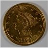 1896 2 1/2 LIBERTY GOLD, SCARCE, MS62+, MINTAGE ONLY 19,202