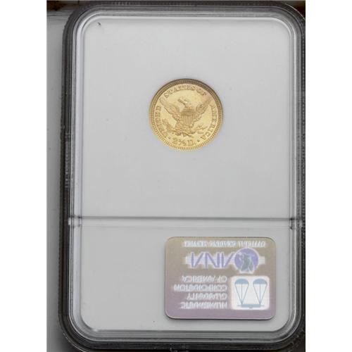 <B>1896<$2 1/2> MS62 NGC.</B></I> Satiny with rich orange-yellow fields and devices. Boldly struck, as usual for the series, though myriad small field abrasions help define the grade.