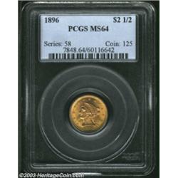 <TABLE cellSpacing=0 cellPadding=0 width="100%" bgColor=#000000 border=0><TBODY><TR><TD width="100%"><TABLE cellSpacing=1 cellPadding=3 width="100%" border=0><TBODY><TR><TD width="100%" bgColor=#79735c><FONT face=arial color=#ffffff size=3><B>Description</B> </FONT></TD></TR><TR><TD width="100%" bgColor=#ffffff><FONT face=arial size=2><B>1896 $2 1/2 MS64 PCGS.</B></I> Well struck and highly lustrous, with rich orange-gold color and a few tiny marks on the reverse. Seemingly conservatively graded as a near-Gem. Population: 73 in 64, 52 finer (4/03). </FONT></TD></TR></TBODY></TABLE></TD></TR></TBODY></TABLE><BR><A name=PricesRealized></A><TABLE cellSpacing=0 cellPadding=0 width="100%" bgColor=#000000 border=0><TBODY><TR><TD width="100%"><TABLE cellSpacing=1 cellPadding=3 width="100%" border=0><TBODY><TR><TD width="100%" bgColor=#79735c><A name=PR><FONT face=arial color=#ffffff size=3><B>Previous Prices from Heritage Auctions</B> </FONT></A></TD></TR><TR><TD bgColor=#f6f6ed><TABLE cellSpacing=0 cellPadding=0 width="100%" border=1><TBODY><TR><TD align=middle width="33%"><B>Date</B></TD><TD align=middle width="33%"><B>Service</B></TD><TD align=middle width="33%"><B>Price</B></TD></TR><TR bgColor=whitesmoke><TD width="33%"><B>02/12/2002</B></TD><TD width="33%">PCGS</TD><TD width="33%">$718.75</TD></TR><TR bgColor=whitesmoke><TD width="33%"><B>08/02/1997</B></TD><TD width="33%">PCGS</TD><TD width="33%">$1,437.50</TD></TR><TR bgColor=whitesmoke><TD width="33%"><B>04/30/1993</B></TD><TD width="33%">PCGS</TD><TD width="33%">$1,980.00</TD></TR><TR bgColor=whitesmoke><TD width="33%"><B>08/05/2001</B></TD><TD width="33%">NGC</TD><TD width="33%">$644.00</TD></TR><TR bgColor=whitesmoke><TD width="33%"><B>10/06/2000</B></TD><TD width="33%">NGC</TD><TD width="33%">$603.75</TD></TR></TBODY></TABLE></TD></TR><TR><TD bgColor=#ffffff><FONT face=arial size=1 ?>PLEASE NOTE: All prices realized reflect the final hammer price PLUS the buyer's premium in auctions that charge a buyer's premium. Each item has a notation at the top of the listing indicating whether that lot included a buyer's premium. Example: A item that sells with a final hammer price of $100 and a 20% buyer's premium will display with a price realized of $120. All information listed is intended to be as accurate as possible, but errors are possible. Please use this guide carefully and inform us of any inaccuracies. </FONT></TD></TR></TBODY></TABLE></TD></TR></TBODY></TABLE><BR><TABLE cellSpacing=0 cellPadding=0 width="100%" bgColor=#000000 border=0><TBODY><TR><TD width="100%"><TABLE cellSpacing=1 cellPadding=3 width="100%" border=0><TBODY><TR><TD width="100%" bgColor=#79735c colSpan=6><FONT face=arial color=#ffffff size=3><B>Price Guide*</B> </FONT></TD></TR><TR bgColor=#f6f6ed><TD align=middle><B>Grade</B> </TD><TD align=middle><B>Coin World<BR>(Trends)</B> </TD><TD align=middle><B>Numismedia<BR>Retail</B> </TD><TD align=middle><B>Numismedia<BR>Wholesale</B> </TD><TD align=middle><B>Coin<BR>Universe</B> </TD><TD align=middle><B>Heritage<BR>Value Index</B> </TD></TR><TR bgColor=#ffffff><TD align=middle>63</TD><TD align=right>$800.00</TD><TD align=right>$840.00</TD><TD align=right>$675.00</TD><TD align=right>$840.00</TD><TD align=right>$606.13</TD></TR><TR style="FONT-WEIGHT: bold" bgColor=#cccfdd><TD align=middle>64</TD><TD align=right>$1,200.00</TD><TD align=right>$970.00</TD><TD align=right>$775.00</TD><TD align=right>$950.00</TD><TD align=right>$693.38</TD></TR><TR bgColor=#ffffff><TD align=middle>65</TD><TD align=right>---</TD><TD align=right>---</TD><TD align=right>$1,675.00</TD><TD align=right>$2,300.00</TD><TD align=right>$1,983.33</TD></TR><TR bgColor=#ffffff><TD colSpan=6><FONT size=1>*All information listed is intended to be as accurate as possible, but errors are possible. No item may be returned or refused based on this information which is provided as a service to our customers. You should contact each pricing source directly to determine the accuracy of this information. </FONT></TD></TR></TBODY></TABLE></TD></TR></TBODY></TABLE><BR><TABLE cellSpacing=0 cellPadding=0 width="100%" bgColor=#000000 border=0><TBODY><TR><TD width="100%"><TABLE cellSpacing=1 cellPadding=3 width="100%" border=0><TBODY><TR><TD width="100%" bgColor=#79735c><FONT face=arial color=#ffffff size=3><B>Population Guide</B> </FONT></TD></TR><TR bgColor=#ffffff><TD align=middle><!-- Begin Output of Population Grid--><TABLE cellSpacing=0 cellPadding=0 width="100%" border=0><TBODY><TR><TD vAlign=center><TABLE cellSpacing=0 width="100%" border=1 cellsadding="3"><TBODY><TR><TD vAlign=center><TABLE cellSpacing=0 cellPadding=3 width="100%" border=1><TBODY><TR><TD vAlign=center align=middle bgColor=#f0f1e8 colSpan=2 <CENTER><FONT face=Arial size=2><B>PCGS Pop </B></FONT><CENTER></CENTER></TD><TD vAlign=center align=middle bgColor=#f0f1e8 colSpan=2><CENTER><FONT face=Arial size=2><B>NGC Pop</B></CENTER></FONT></TD></TR><TR><TD vAlign=center><FONT face=Arial size=2>(64)</FONT> </TD><TD vAlign=center align=right><FONT face=Arial size=2>72</FONT> </TD><TD vAlign=center><FONT face=Arial size=2>(64)</FONT> </TD><TD vAlign=center align=right><FONT face=Arial size=2>67</FONT> </TD></TR><TR><TD vAlign=center><FONT face=Arial size=2>(>64)</FONT> </TD><TD vAlign=center align=right><FONT face=Arial size=2>53</FONT> </TD><TD vAlign=center><FONT face=Arial size=2>(>64)</FONT> </TD><TD vAlign=center align=right><FONT face=Arial size=2>61</FONT> </TD></TR></TBODY></TABLE></TD></TR></TBODY></TABLE></TD></TR></TBODY></TABLE><!-- End Output of Population Grid--> Important notice: Heritage usually auctions material at the rate of 200-250 lots per hour. On some occasions eBay Live bid software or the Internet may not be able to keep up with the pace of the auction. We recommend placing a realistic absentee bid now as insurance to avoid disappointment. Occasionally the auctioneer may eliminate or reject an eBay Live bid, and the auctioneer may also reopen a lot after the close of the eBay live