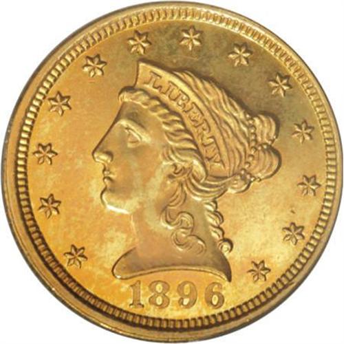 <B>1896 $2 1/2 PR64 PCGS.</B></I> A pinpoint-sharp specimen with flashy fields and rich peach-gold toning. The field above the eagle's head is slightly glossy, but surfaces are nearly unabraded. Encapsulated in an old green label holder. Just 132 proofs were struck. Population: 13 in 64, 14 finer (7/07).<BR><BR><B>Coin Engraver:</B> Christian Gobrecht<BR><BR><b>Shipping:</b> Coins & Currency (<a target="_blank" href="http://www.heritageauctions.com/common/shipping.php">view shipping information</a>)