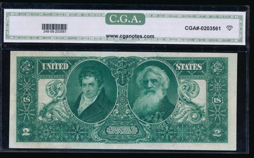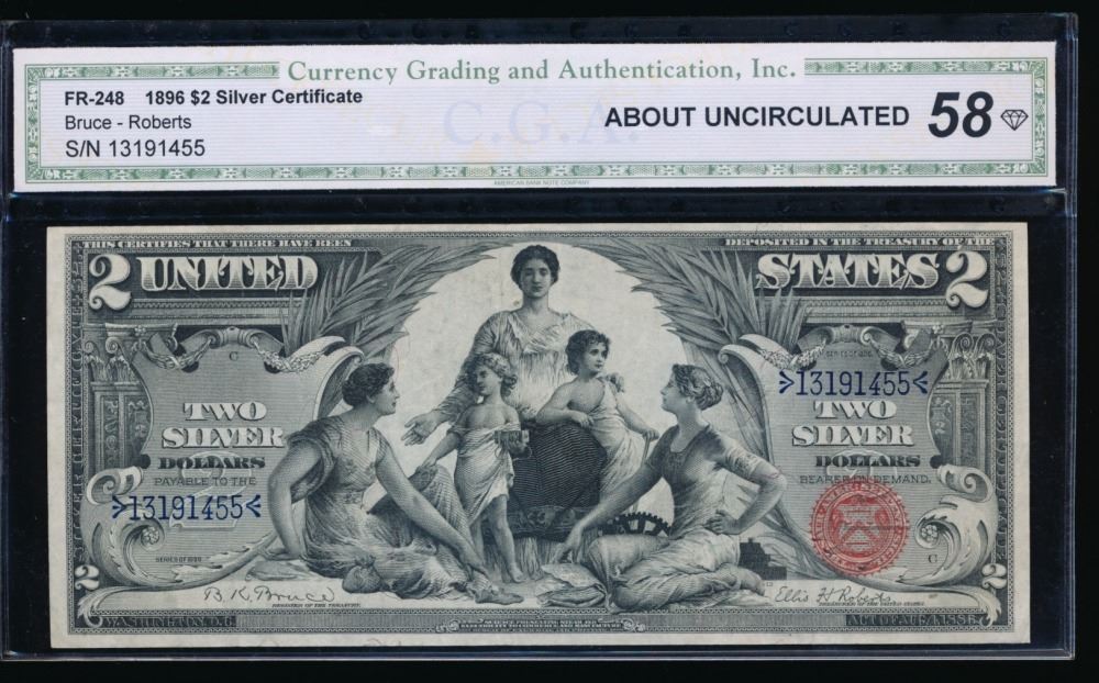 One 1896 $2 Educational Silver Certificate CGA 58.
