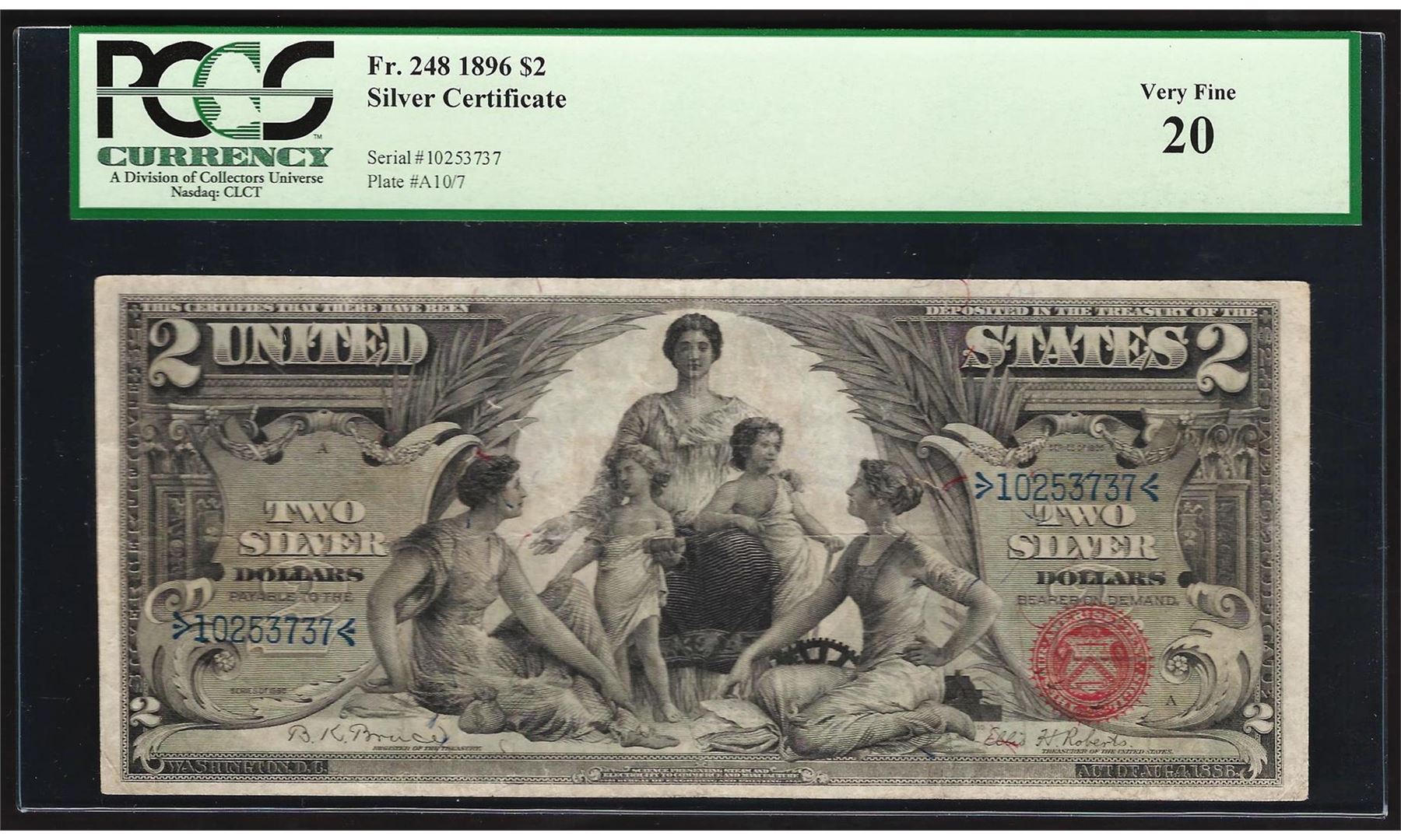One 1896 $2 Educational Silver Certificate Note Fr.248 PCGS Very Fine 20. PCGS Graded.