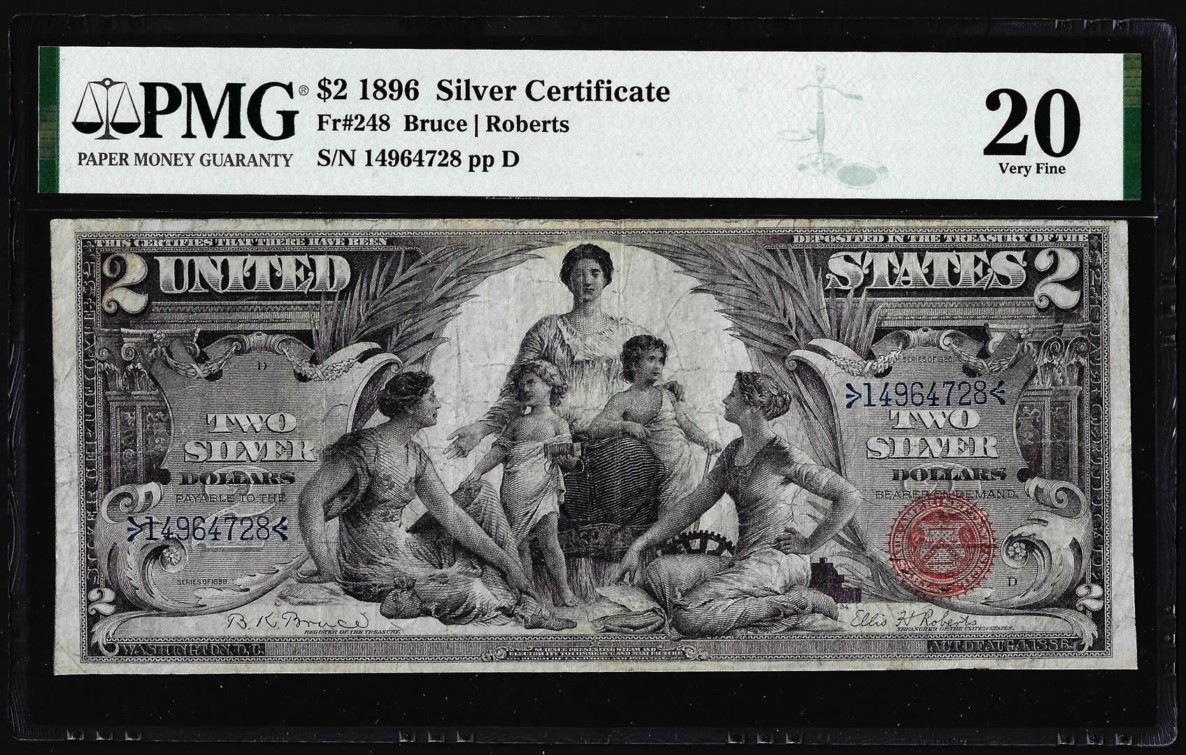 One 1896 $2 Educational Silver Certificate Note Fr.248 PMG Very Fine 20. PMG Certified.