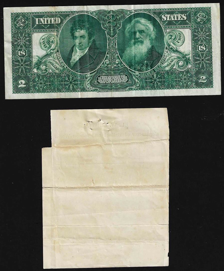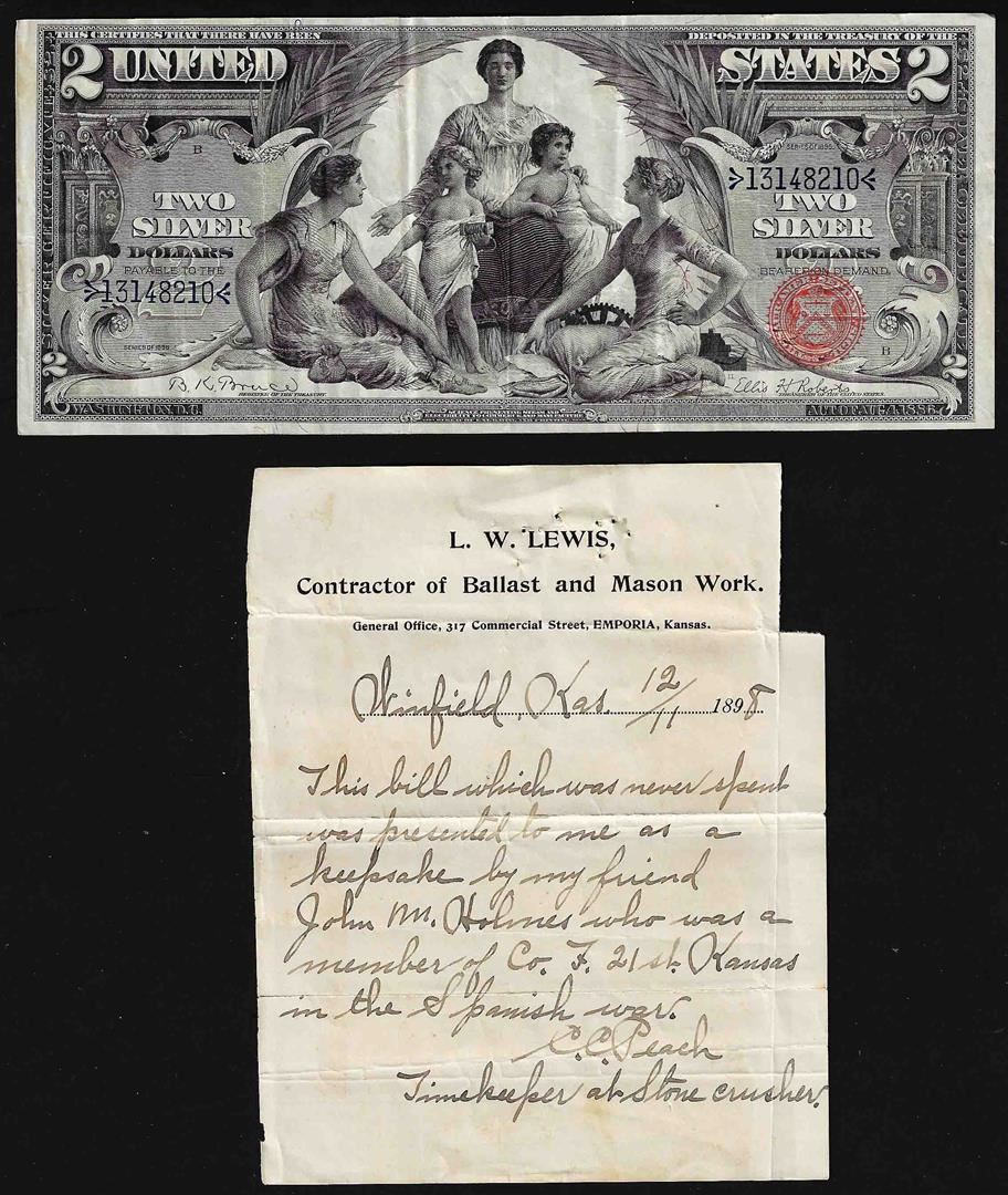 One 1896 $2 Educational Silver Certificate Note with Personal Letter.