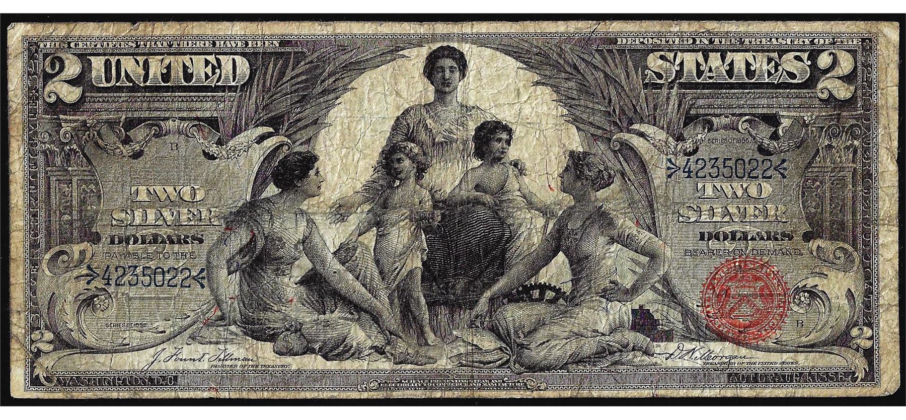 One 1896 $2 Educational Silver Certificate Note.