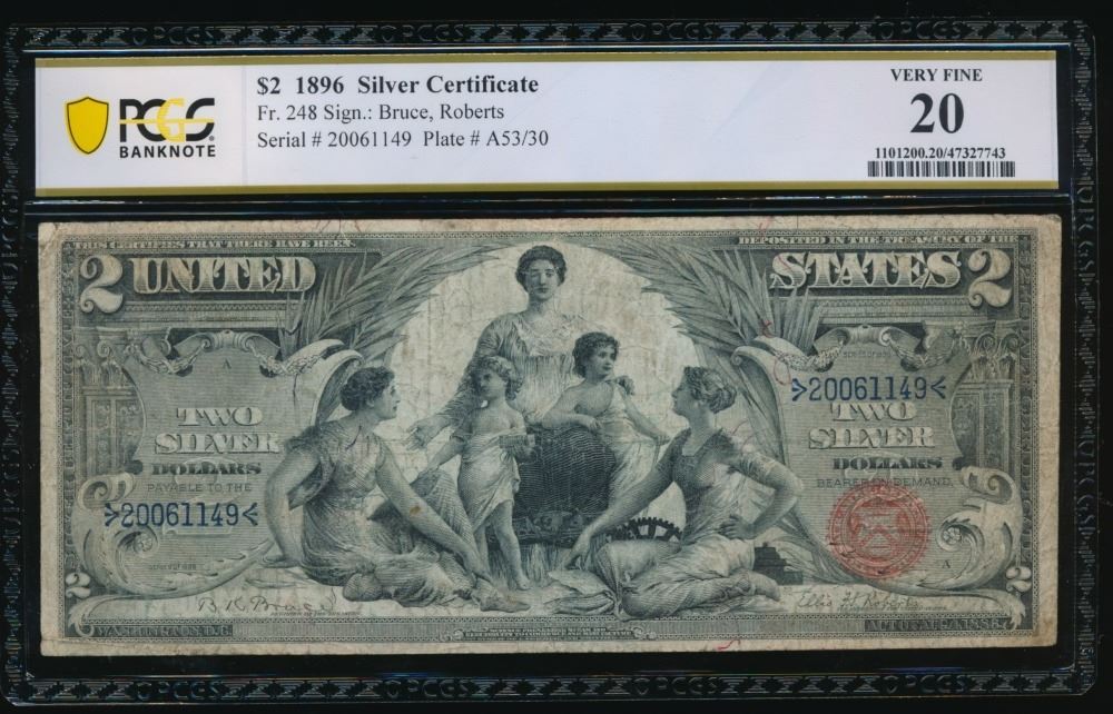 One 1896 $2 Educational Silver Certificate PCGS 20.