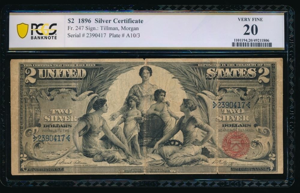 One 1896 $2 Educational Silver Certificate PCGS 20.