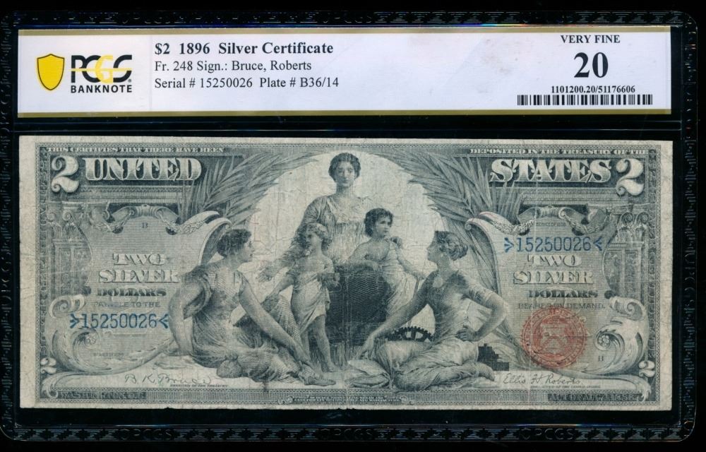 One 1896 $2 Educational Silver Certificate PCGS 20.