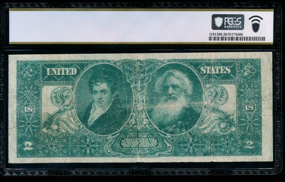 One 1896 $2 Educational Silver Certificate PCGS 20.