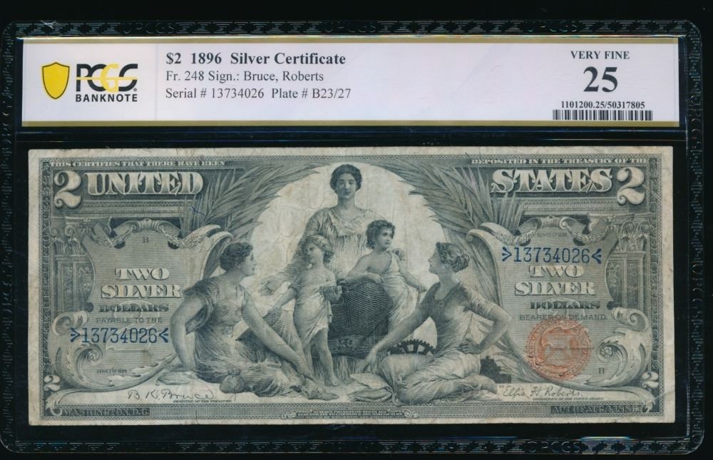 One 1896 $2 Educational Silver Certificate PCGS 25.
