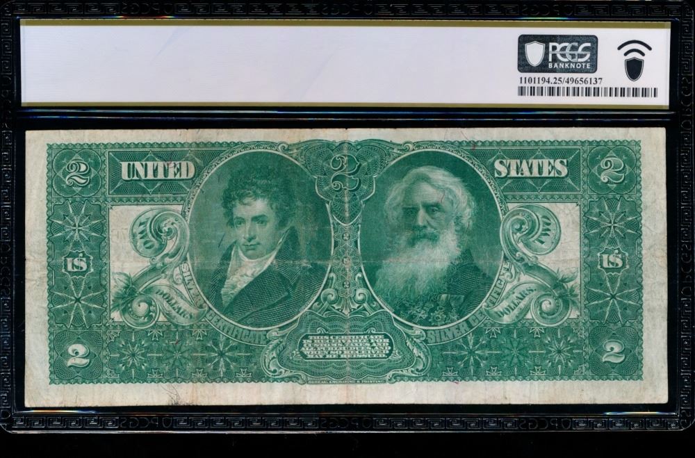 One 1896 $2 Educational Silver Certificate PCGS 25.