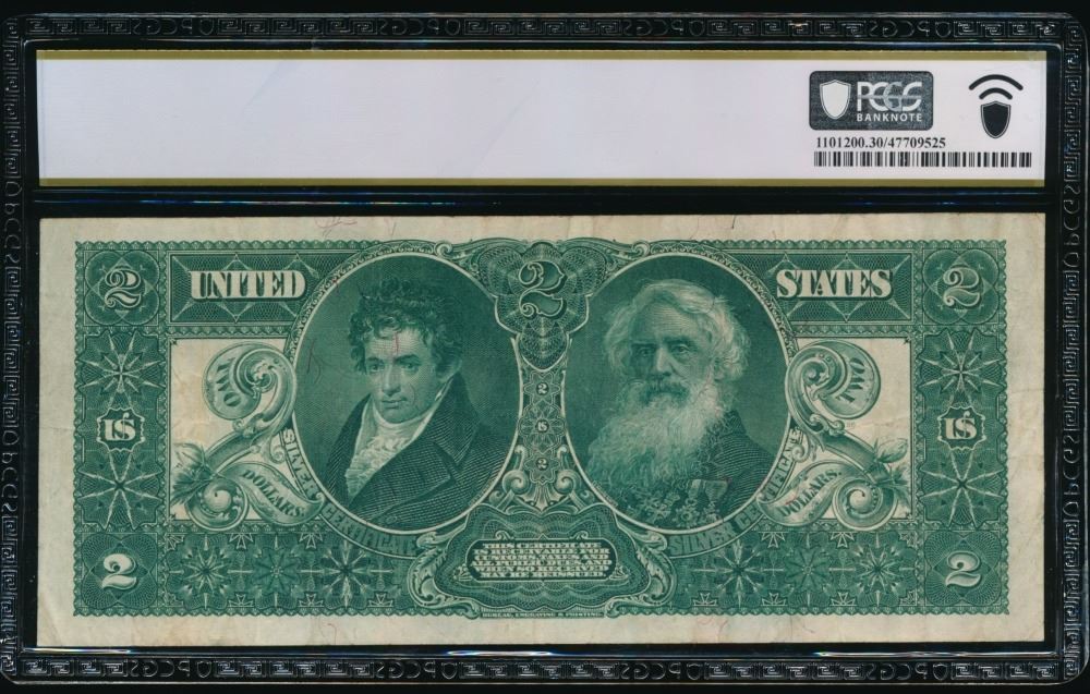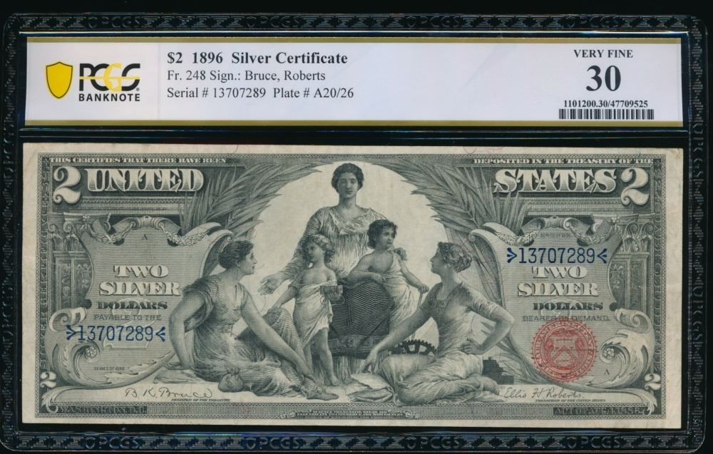 One 1896 $2 Educational Silver Certificate PCGS 30.
