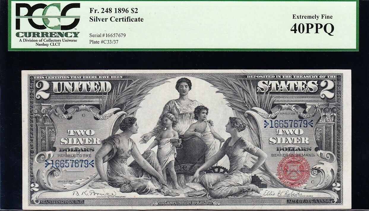 One 1896 $2 Educational Silver Certificate PCGS 40PPQ.
