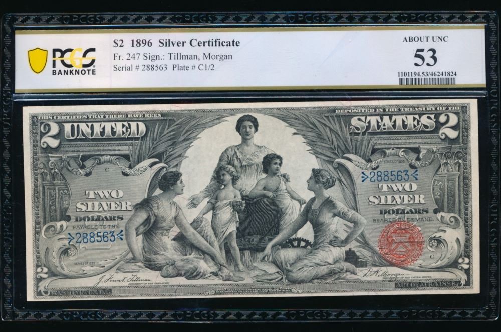 One 1896 $2 Educational Silver Certificate PCGS 53.