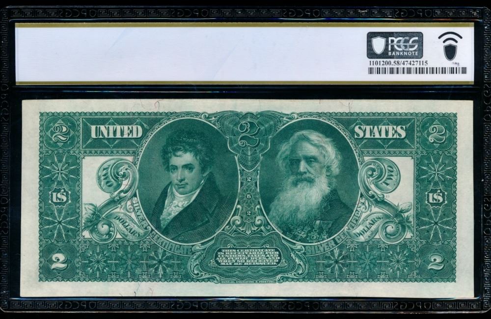 One 1896 $2 Educational Silver Certificate PCGS 58.