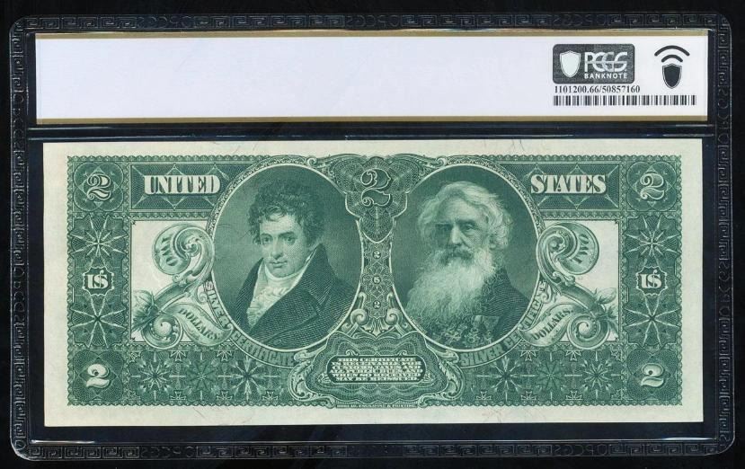 One 1896 $2 Educational Silver Certificate PCGS 66PPQ.